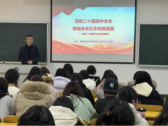 张小刚勉励同学们胸怀“国之大者”,夯实专业基础,强化宏观与国际视野,将个人成长融入国家发展伟业,勇担时代重任。课后,学生反响热烈,表示加深了对党的二十届四中全会精神的理解,明确了自身责任,坚定了专业报国的信念。