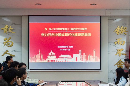 向前清晰阐释了“十五五”规划制定的时代背景与历史方位,深入解读了其指导思想、必须坚持的基本原则以及高质量发展的核心目标,帮助同学们准确把握国家未来五年发展的总体要求与战略方向。她结合学校“锲而不舍 敢为人先”的校训精神,号召同学们将国家战略与个人发展相结合,夯实专业基础,投身创新实践,以实际行动贯彻落实全会精神,在民族复兴的伟大征程中贡献青春力量。